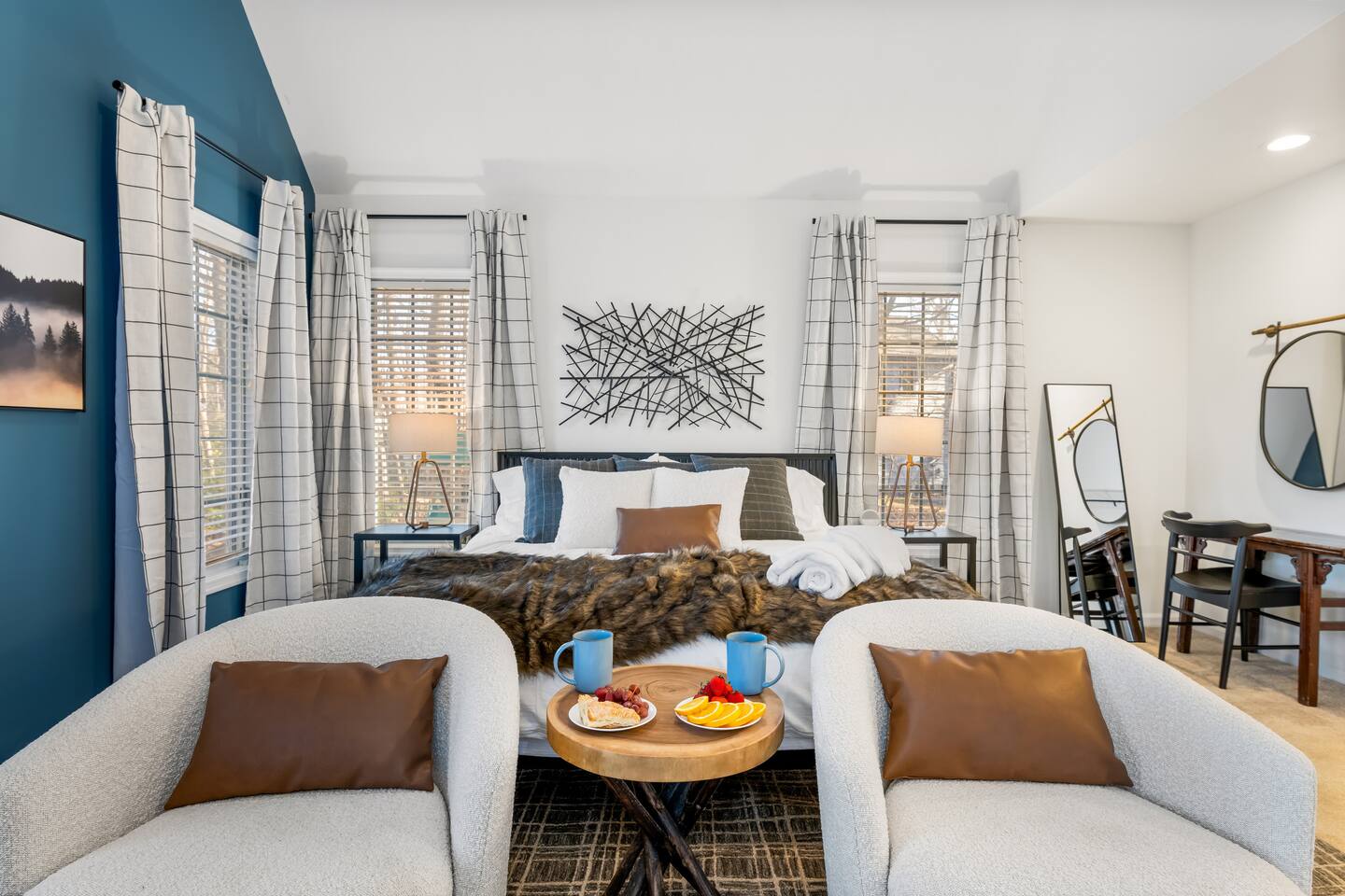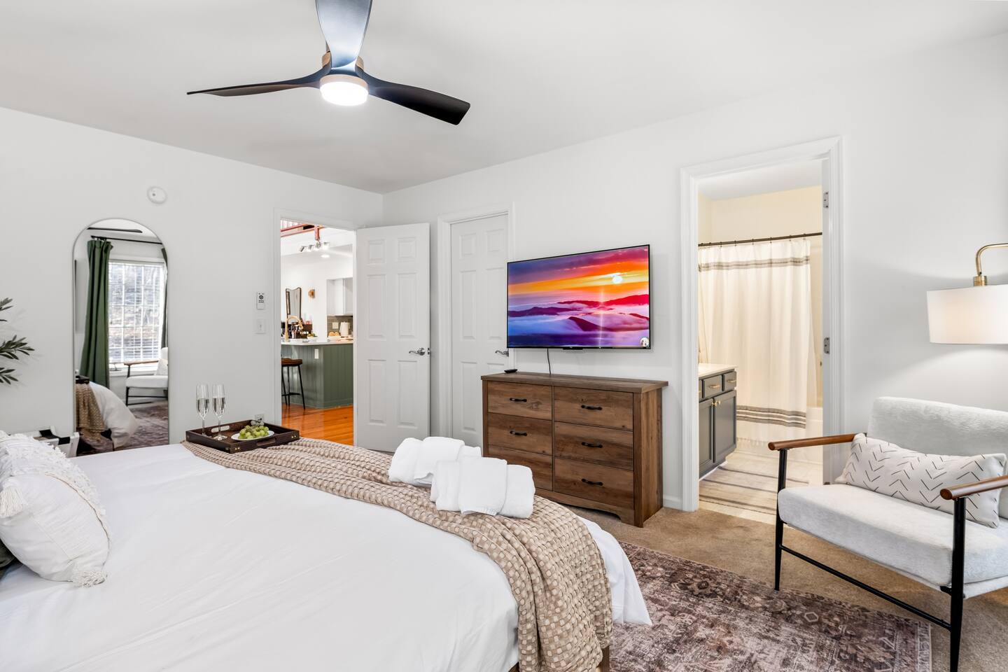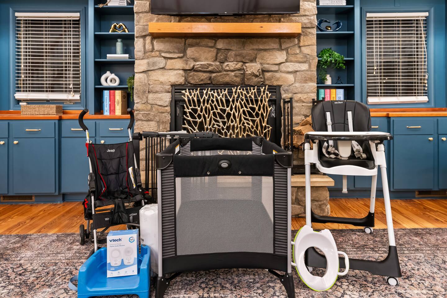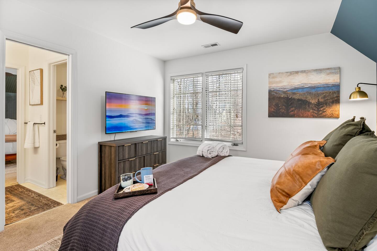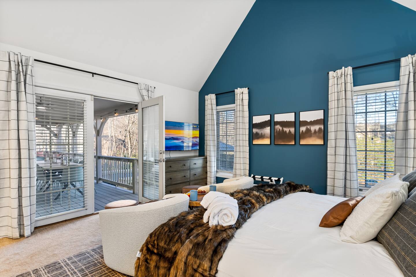 • Sundown Sanctuary is pet friendly! There is a $100 total pet fee for your visit, which will cover up to 4 pets (please indicate how many pets you are bringing in the "guests" section). • Baby gear provided: playpen, stroller, high chair, monitor, potty seat, and plenty of plate sets and cups • Wintergreen offers hiking, skiing, snowboarding, tubing, swimming, dining, spa, ropes course, golfing, and SO much more. • While there are 3 steps required to access the property, once inside, the main level has two master bedrooms, plus the kitchen, living / dining area, and back porch. • Ample parking for 6+ vehicles is available in the flat, paved driveway. • Wifi is fast with a strong signal throughout the house and deck. Each bedroom (aside from bunk room), great room, and even backyard features a smart TV where you can access all the main streaming services! • We provide a fully stocked coffee/tea/hot cocoa bar with multiple coffee drip and Keurig options. • Linens and towels are provided along with robes in the 2 master's downstairs. • Guests can enjoy free community pool access in the summer season (though the HOA rules stipulate no more than 6 guests at a time, and the permitted hours are 2-6pm). • Pack n play, high chair, baby monitor, stroller, baby gate, and kid dishes / utensils provided. • We do require a separate rental agreement, which we will send a link to e-sign after you book. There are no additional fees beyond those listed here. • Please note that if you would like to send packages to the property, you do so at your own risk. USPS does not deliver on the mountain. We cannot be held responsible for late or undelivered packages. Additionally, we charge $25 for any return services requested, in addition to actual postage.