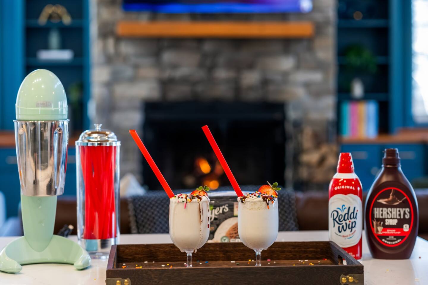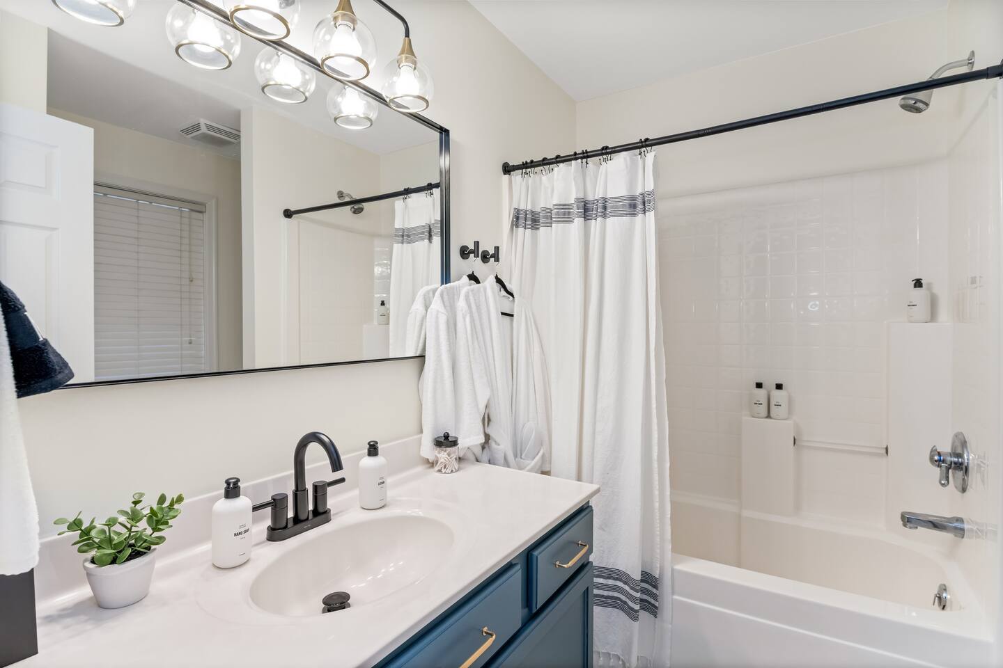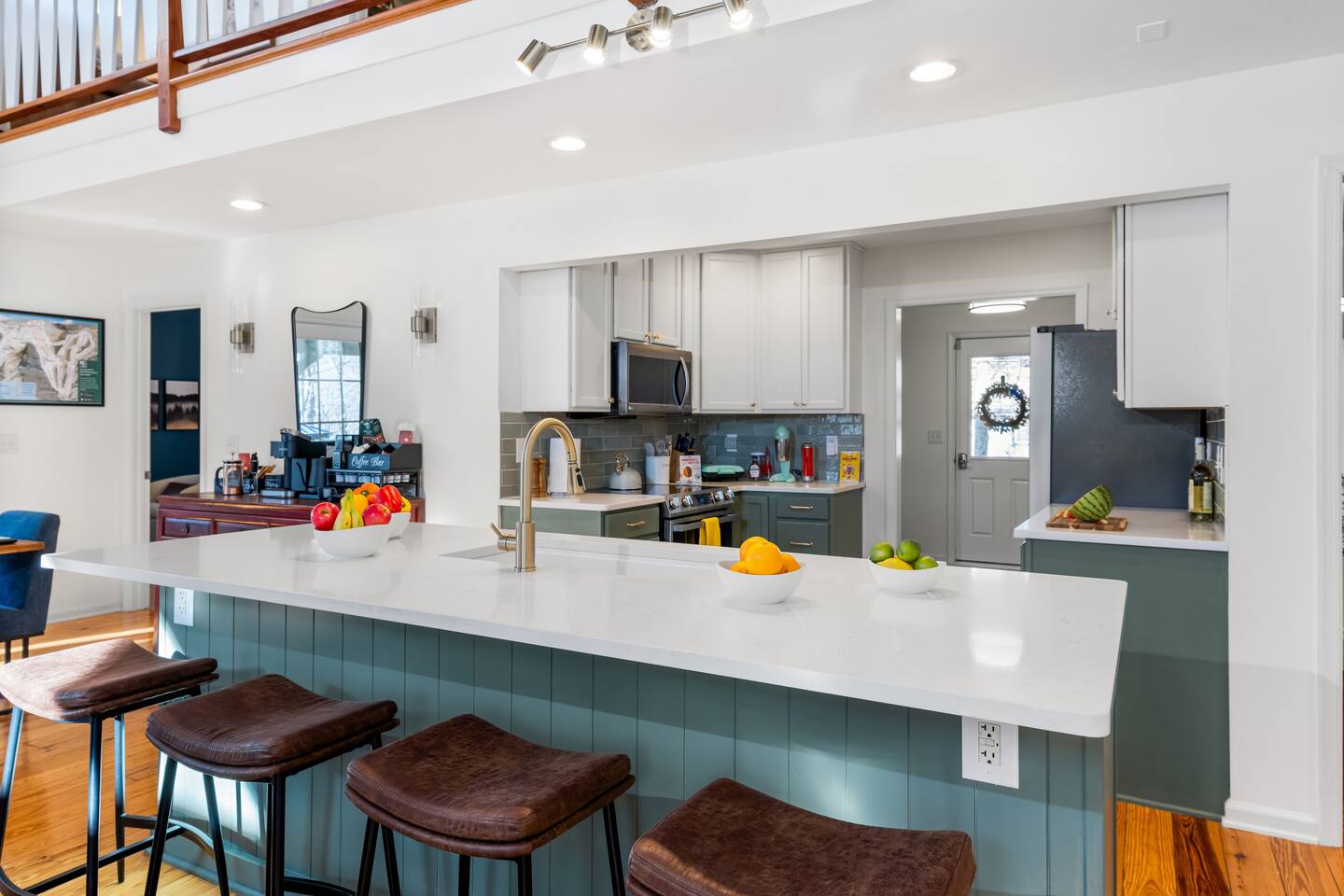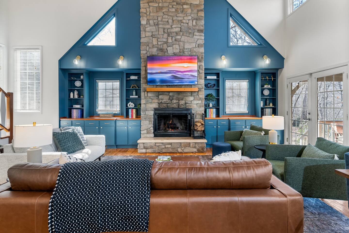 The house is a 5 minute drive to the slopes, dining, and all the other Wintergreen attractions. If you’re willing to venture a bit further, some of the best hiking trails in the state are off the Blue Ridge Parkway (15 minutes from the house), and there are over dozen wineries, breweries, and distilleries all within a 30 minute drive. During the summer, enjoy Sherando Lake and Lake Monocan with sandy beach entrances, or take a dip in the heated community pool. When you open the door to this beautiful home you’ll see every inch has been carefully and professionally decorated. The open floorplan starts with a welcoming & spacious entry way to set down your luggage and leads you into a decadent living area, beautiful stone fireplace w/ smart TV, and sky-high ceilings! "This place is amazing inside and out !!! Absolutely gorgeous, so tastefully decorated and felt so cozy !!! Everything we needed." - The Stoll Family The home layout is as follows: Main level: • Living room with wood burning fireplace (firewood provided) • Dining area with space for 8-10 at the main table, plus another 4 at the adjoining bar • Covered porch with large 12 person outdoor dining table and cozy swinging daybed • Newly renovated and fully stocked kitchen with a suite of stainless appliances and everything you need to prepare large meals (including spices) • Fully loaded Keurig coffee/tea bar and hot cocoa station • BR 1: Master bedroom with king bed, additional seating area, desk/work space, and back porch access • Full bath 1: Ensuite bathroom to BR 1 with shower/tub combo • BR 2: Additional master bedroom with king bed and reading chair • Full bath 2: Ensuite bathroom to BR2 with shower/tub combo • Half bath • Laundry area with full size washer and 2 dryers to dry the whole group's ski clothes in record time ;) Upstairs: • BR 3: Bunk room with two sets of twin-over-twin bunk beds, plus a climbing wall, Lego wall, and infinity game table with tons of built-in digital board games • BR 4: King bedroom • Full bath 3: Jack-and-Jill bathroom between BR3 and BR4, with shower/tub combo • BR 5: King bedroom • BR 6: King bedroom • Full bath 4: Jack-and-Jill bathroom between BR5 and BR6, with shower/tub combo Backyard: • Brand new 7 person hot tub with custom-built bar surrounding it, so you can be social even if you don't want to get in :) • Outdoor living & seating area under the gazebo with big screen outdoor TV • 6 burner stainless steel propane grill • Wood burning firepit surrounded by 10 Adirondack chairs. Firewood is provided • Play set with swings, slide, and climbing wall • Several yard games including corn hole, spike-ball, kan jam, ladder ball, etc
